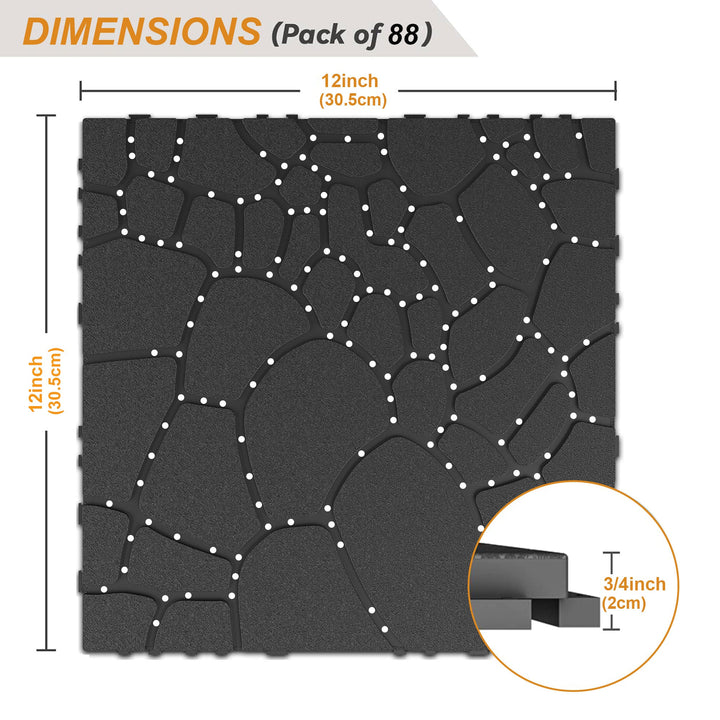 【Efficient Drainage Design】From the front, our patio deck tiles is simulated pebble stone floors. For the back, the rhombic structure design not only increases friction to prevent slipping, increase the stability and firmness, but also is not easy to accumulate water, increases the air flow space and easy to keep floor neat.