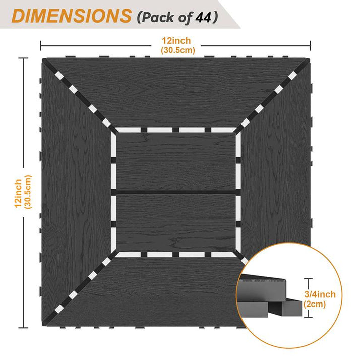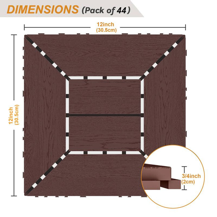 44 Pack Interlocking Deck Tile, Patio Deck Tiles,12x12in Square Waterproof Flooring Tiles All Weather Use, for Outdoor, Indoor, Poolside, Balcony, Backyard