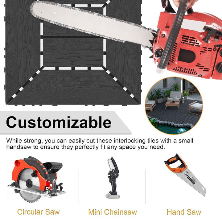 【Customizable & Versatile Use】Use a saw or other cutting tool to cut the plastic floors to the size you want. Fitting for putting this balcony deck tile in your patio deck, pools, garden, soft lawn, backyard, porch, outdoor playground, walkway and the other outside places. Or using in your bathroom, living room and the other indoor areas.