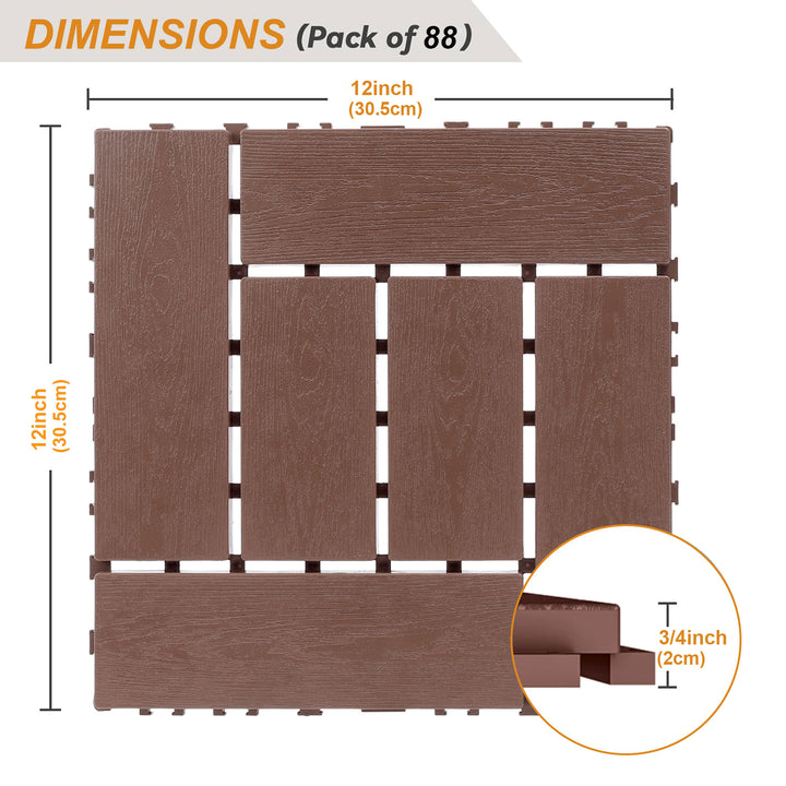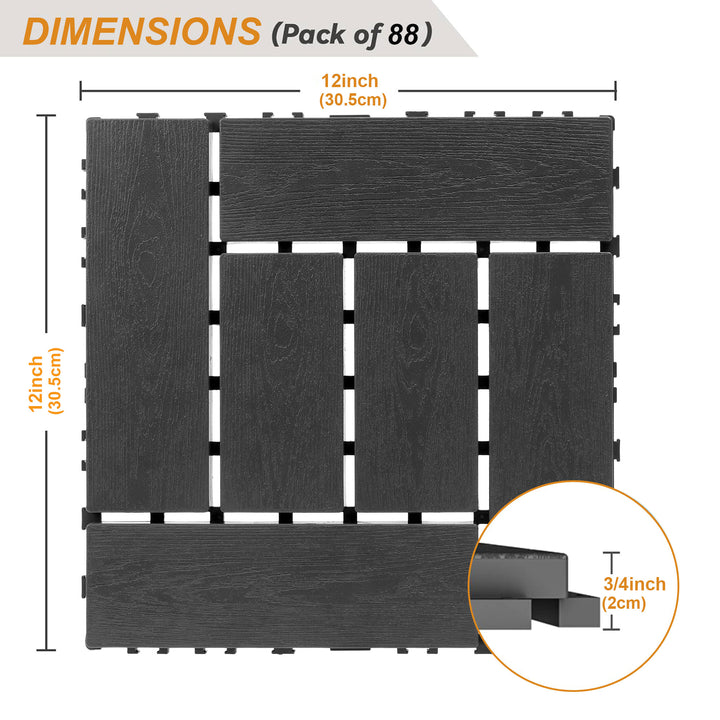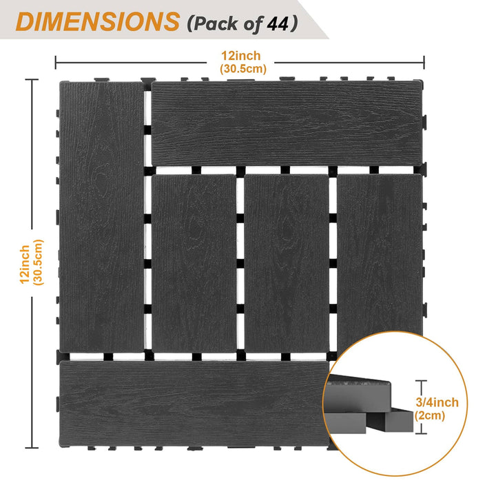 Interlocking Deck Tiles, 44 Pack , 12"x12" Waterproof Outdoor Flooring All Weather Use, Patio Floor Decking Tiles for Porch Poolside Balcony Backyard